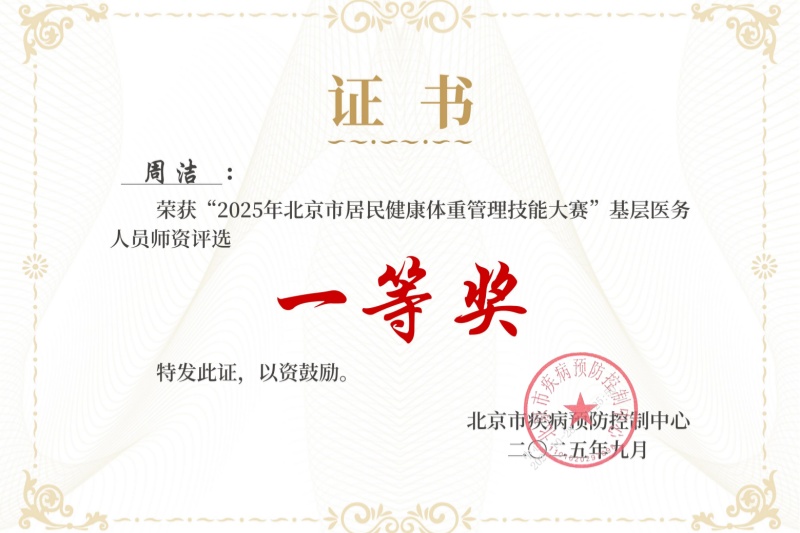 2025年9月29日,“2025北京市居民健康体重管理技能大赛决赛展演活动”在中国插花艺术博物馆多功能厅成功举办,我中心周洁在本次大赛中荣获北京市基层授课师资评选一等奖,并作为基层优秀师资进行了现场展演。