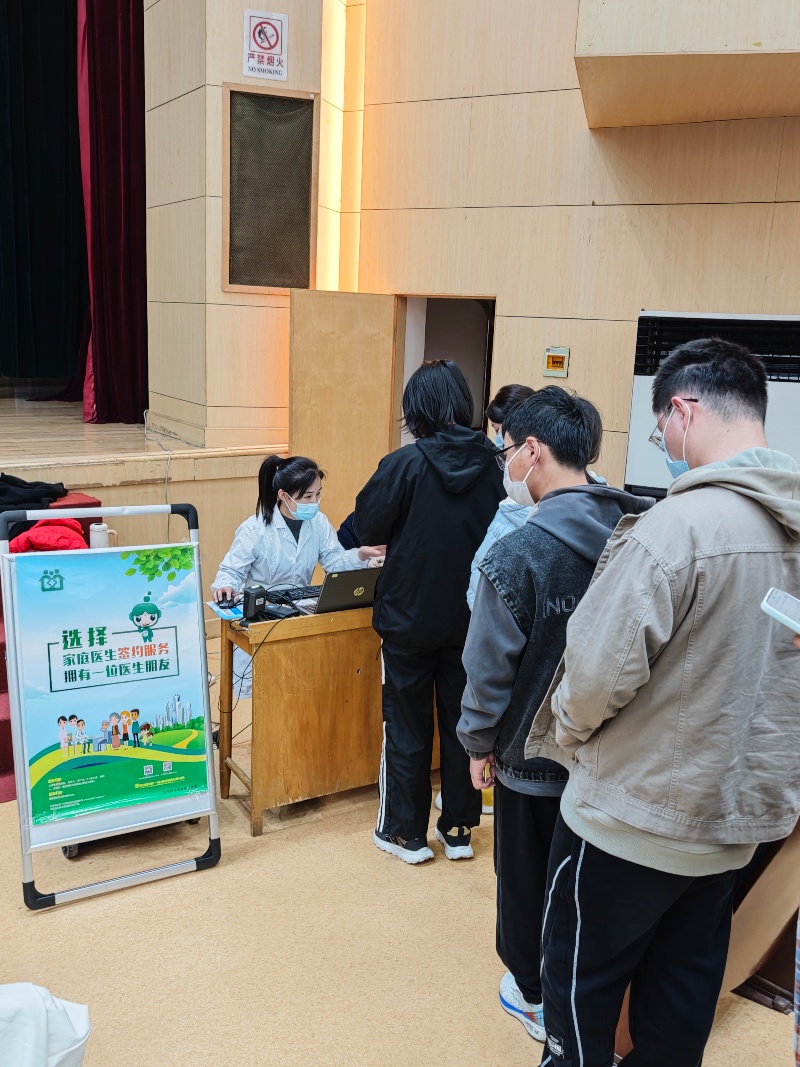 签约工作开展当日,中心同步在青年政治学院校园内开设 “健康护航专场”,并设立临时疫苗接种点。为保障专场服务质量与效率,中心专门抽调 1 名专业医生及 2 名护士组成服务小组,为学生提供 “一站式” 疫苗接种服务,实现签约与健康防护需求的无缝衔接。此次专项签约工作聚焦该校大一新生群体,共为 50 余名大一新生成功完成家庭医生签约,签约率达到 100%,满意度同样达到 100%。