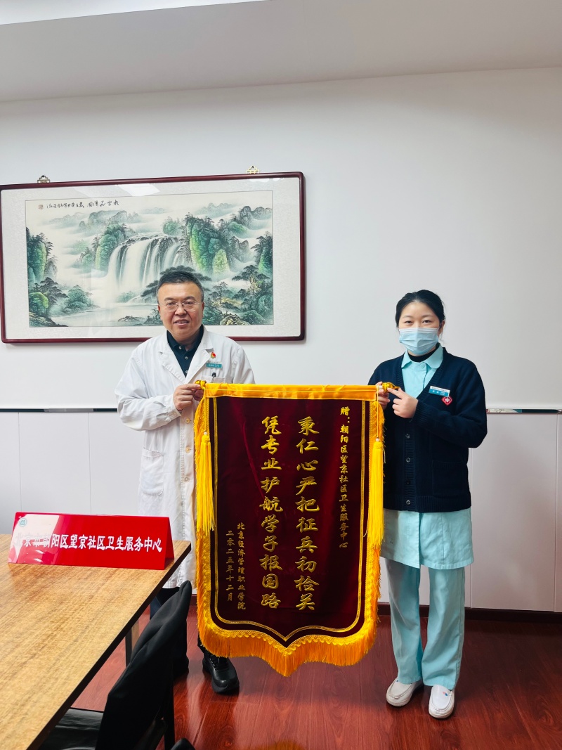 2025年12月19日,我中心收到来自北京经济管理职业学院赠予的一面锦旗,锦旗内容为“凭专业护航学子报国路,秉仁心严把征兵初验关”。